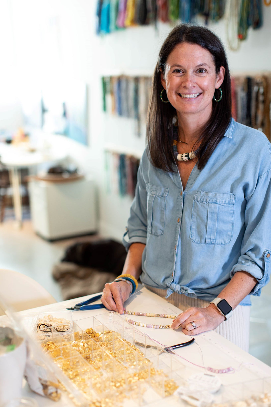 Anne is my right-hand woman! She's also a close friend and neighbor. We stroll our pups after school dropoff and then dive into our hustle in my basement studio. I couldn't make all this happen for y'all without her, she keeps me sane!